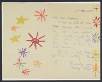 Letter, Marilyn Bazick to Miss Anderson, January 16, 1958 A handmade card to globally renowned contralto Marian Anderson Fisher (1897-1993) from a student named Marilyn Bazick. The card’s letter is written in blue ink in two separate handwritings. Colorful stars and flower shapes drawn in crayon decorate the card. The letter is among many letters from students, aspiring singers and musicians included in the Marian Anderson Papers. Anderson's life was an inspiration to them and to countless others in the United States and abroad (Kruesi 1998).