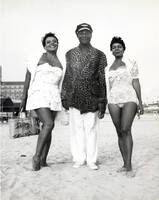 [Sammy Davis, Jr. on Chicken Bone Beach in Atlantic City, New Jersey] Entertainer Sammy Davis, Jr. having fun with friends on Chicken Bone Beach in Atlantic City, New Jersey. Sammy Davis Jr. was an actor and musician famous for being a part of the famed "Rat Pack" in the 1950s and 1960s.