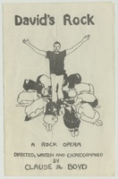 Photograph of the cast and crew of David's Rock Likely taken during a pre-production rehearsal at a nearby church, as suggested by the rows of pews and hymnals in the foreground.