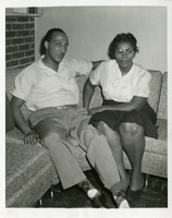 [William Myers, Jr. and Daisy Myers sitting at home] This item is a black and white press photograph of William and Daisy Myers sitting together on a couch.