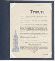 Memorial collage of Jaci Adams photographs / typed biography of Jaci Adams