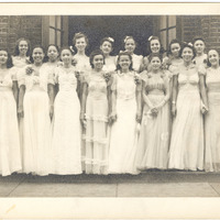 This photograph features Georgine “Gene” Elizabeth Upshur Willis and 15 other graduates of Philadelphia High School for Girls in June 1939. They are smiling and dressed up.