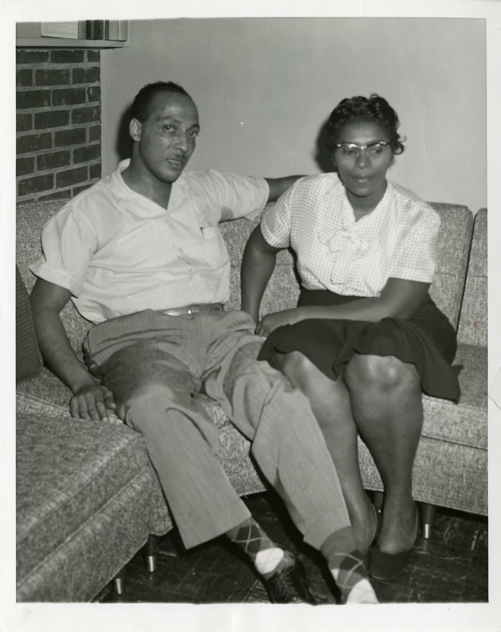 [William Myers, Jr. and Daisy Myers sitting at home]