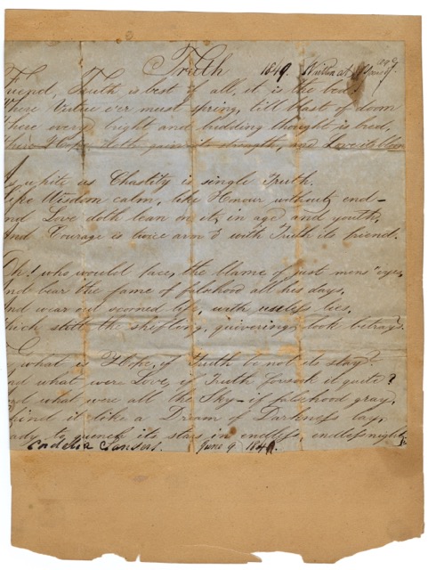 Cogdell, Mary Ann Elizabeth Stevens: Watercolor with poem by Cordelia Sanders on back