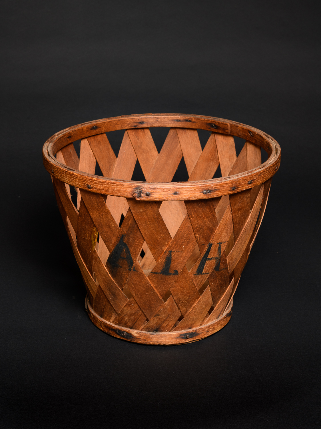 This woven peach basket was manufactured in the early 1900s by African American workers in the Sourland Mountain peach orchards, a large employer for the local Black community, according to the Stoutsburg Sourland African American Museum. Peach baskets were used to collect peaches during harvest, until the San Jose scale peach blight occurred in the late 1800s.