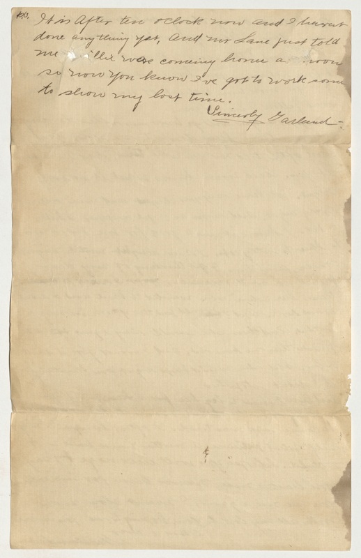 It is after ten oclock now and I havent done anything yet, and mr Lane just told me [Xxxx] was coming home afternoon so now you know Ive got to work some to show my lost time.