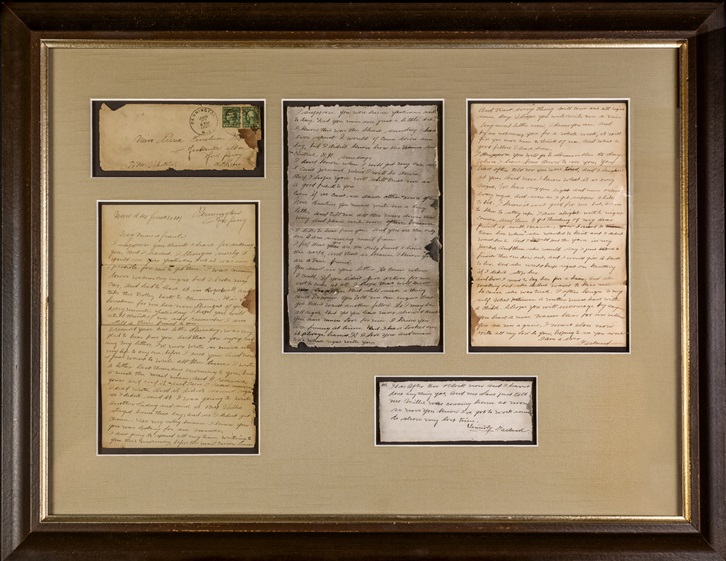 Garland Fields Sr. was the father of Beverly Mills's uncle, Garland Fields Jr. Beverly's grandfather. This first of two love letters describes their courtship and his strong feelings for Emeline, who ultimately did not marry him. Letters had been framed, images attached, and removed for digitization.