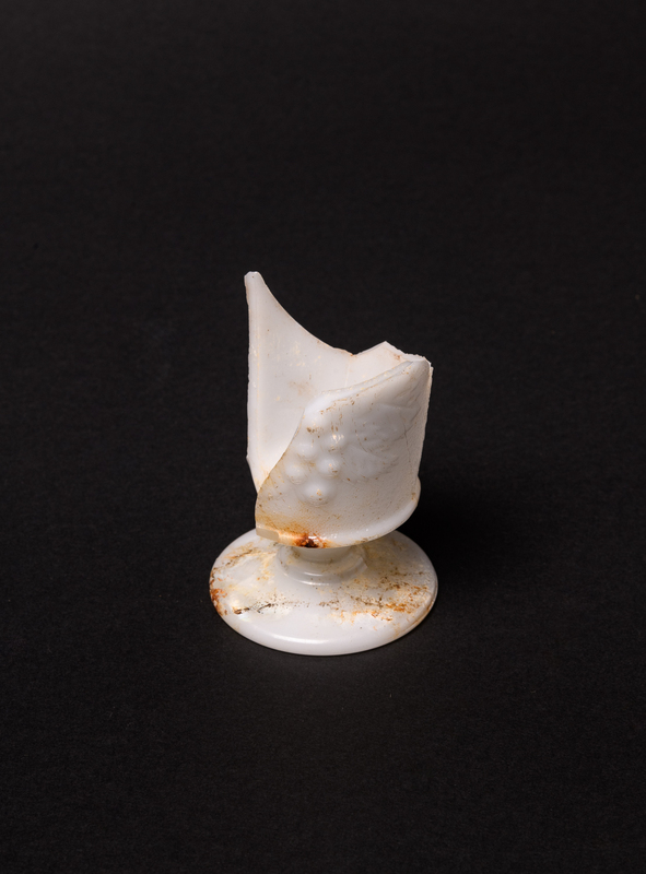 Milk glass chalice (and other archaeological fragments such as nails and bricks), 20th century. Related to the original construction and use of Mt. Zion AME Church
