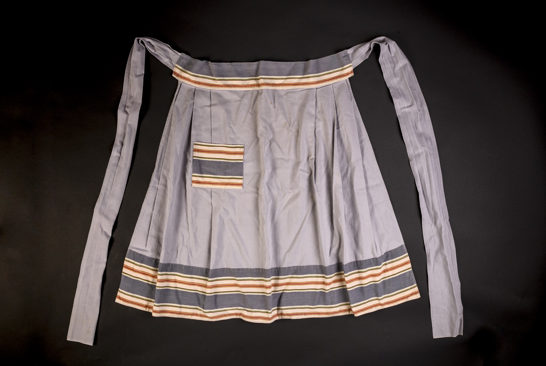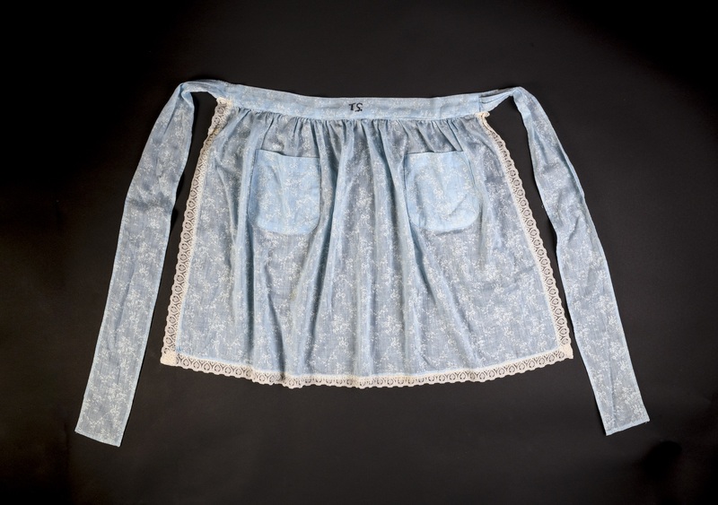 Though it is not documented, it is likely that these aprons sewn by the donor’s mother, was an expert seamstress. Sewing, quilting, and needlework were common skills and income sources for Black women (both during and after slavery). Perhaps at Mother Bethel AME, her mother belonged to a church-based sewing club often referred to as Women’s Sewing Circles, Ladies Auxiliary Societies, etc. For sewing together, these women often gathered at someone’s home to hand make household items like aprons, tablecloths or handkerchiefs. The sewing gatherings were also opportunities for the women to socialize.