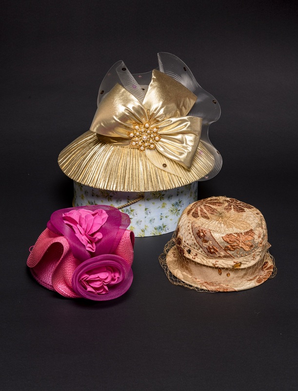 Church hats that would have been worn by the ladies of Mt. Zion AME Church in the late 20th century.