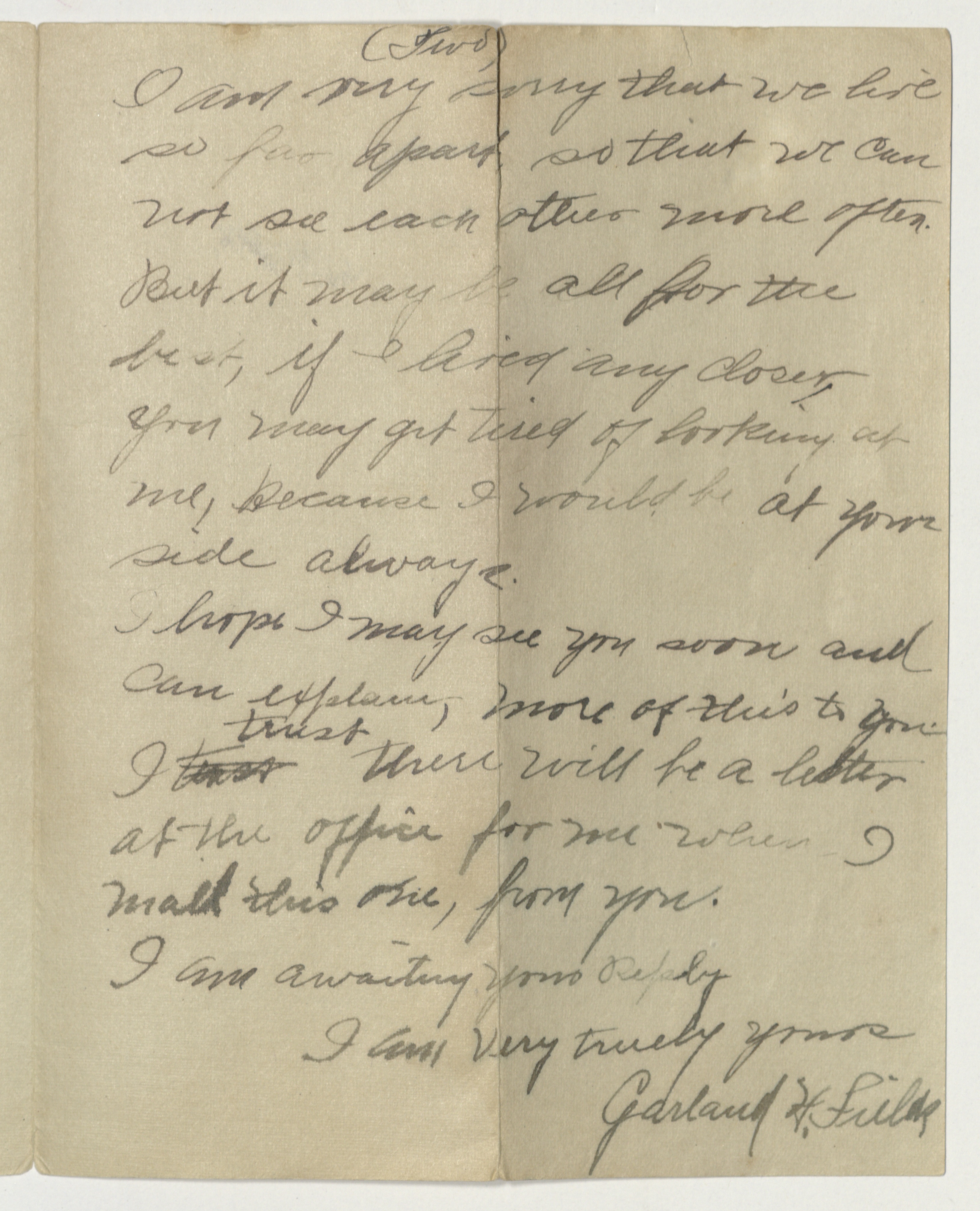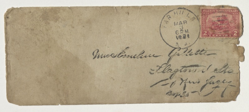 Letter by Garland Fields Sr. to Emeline Gillette, with envelope and fragments