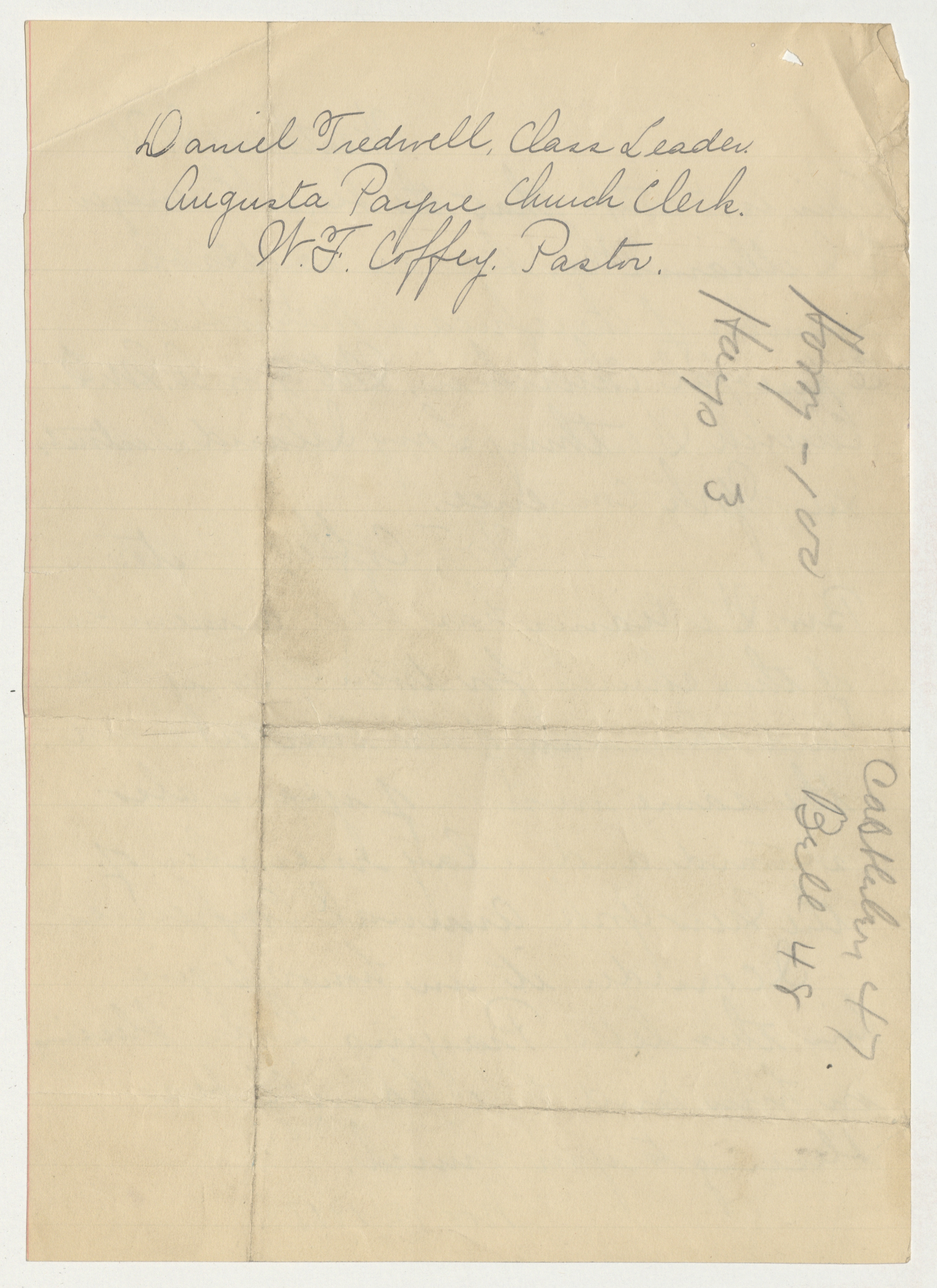 Membership Letter, F. Bleax, Pastor