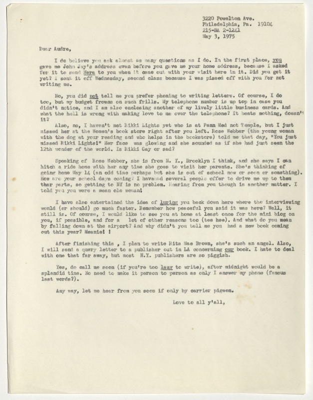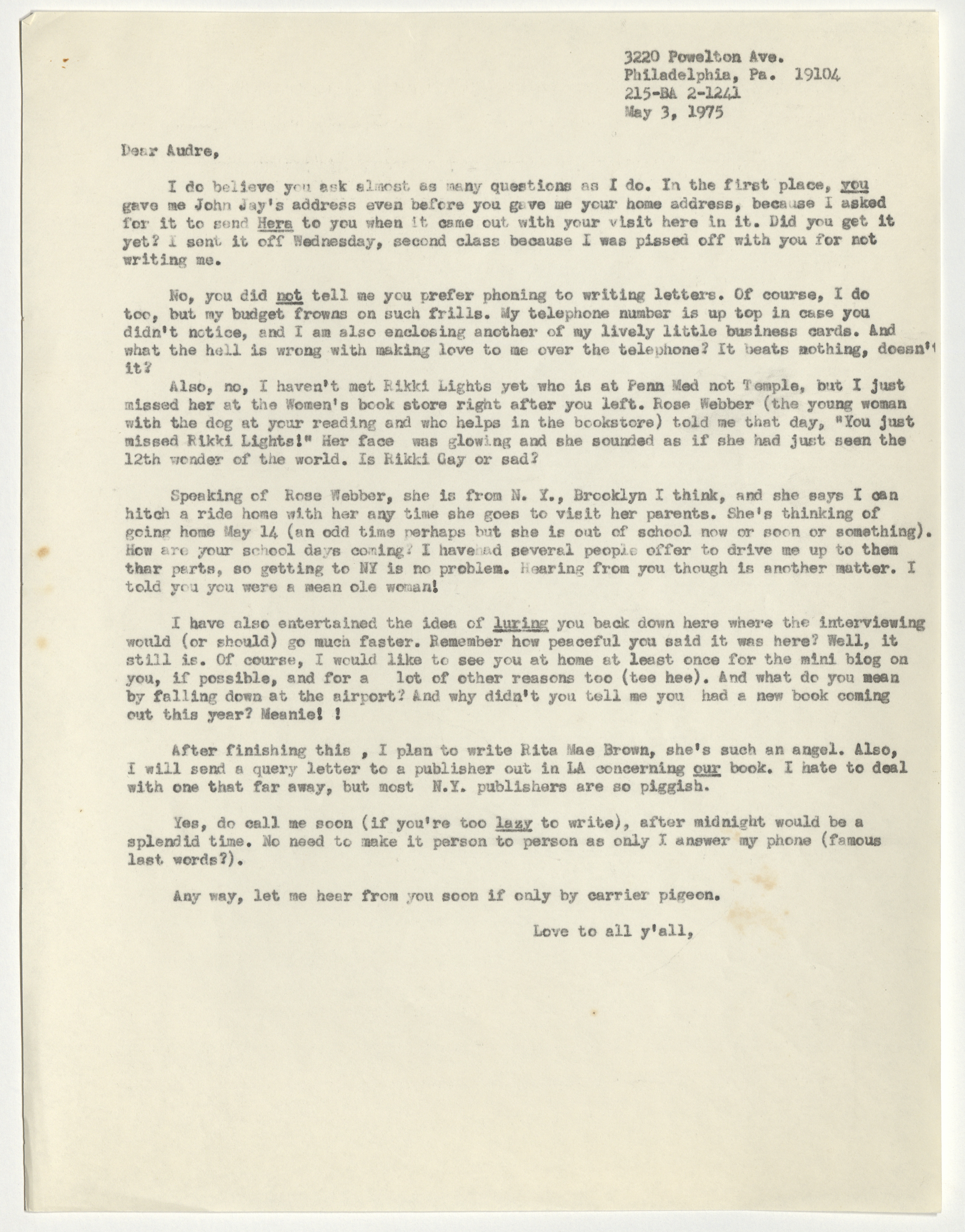 The Letter's author, a lesbian activist, Anita Cornwell was a Philadelphian and lived well into her late 90s (Brownworth, Victoria A. 2023). She was unsparing in her critiques of heteropatriarchy, white supremacy, and the Jim Crow South (Reyes 2023).