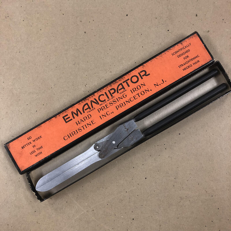 Pictured is a patented device shown within its case, which is a pressing and straightening hot comb designed circa 1923. Howell’s design was impactful for three important reasons. First, unlike traditional hot combs heated on a stove, her design allowed for safe temperature control, reducing the risk of skin burns and damage to Black women’s hair. Second, she received U.S. Patent (c. 1923) for a "hair-straightening comb" that featured a hollow heated interior to distribute heat evenly. Three, placed within historical context; her invention came during the Golden Age of Black Haircare Entrepreneurship, alongside Madam C.J. Walker and Annie Malone, though Howell is less widely recognized. Even today, the hot comb remains at the intersection of Black hair autonomy and the pressures of Eurocentric beauty standards.