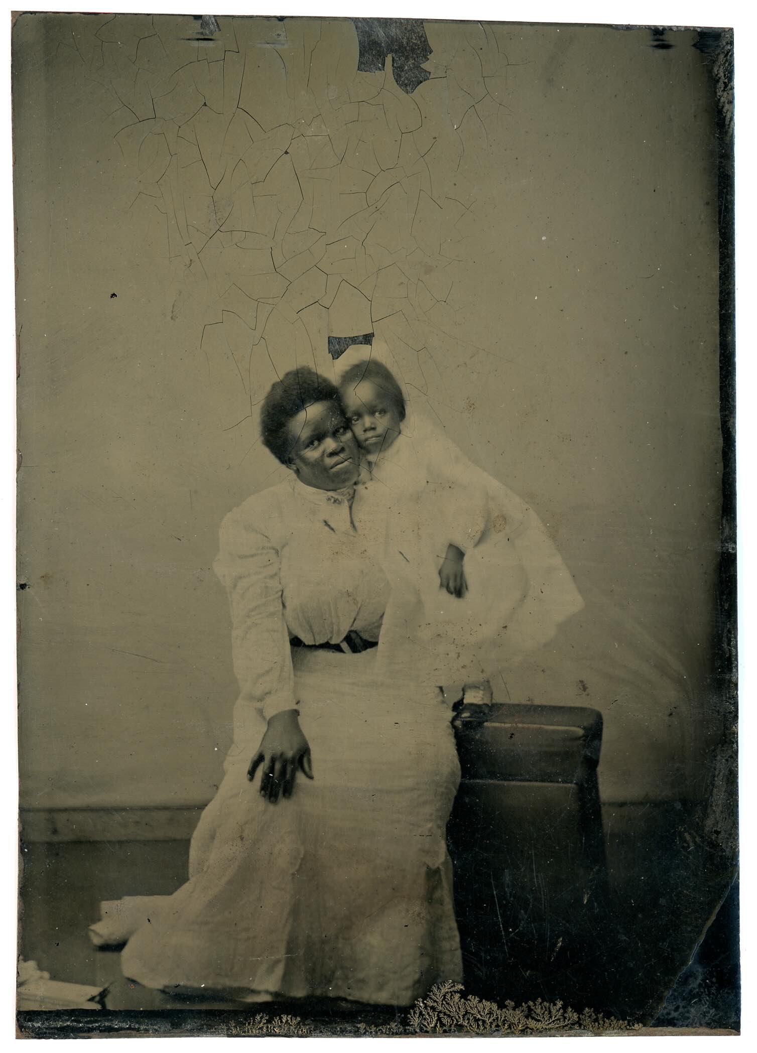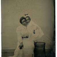This photograph is a tintype of Nancy Kate Greene (1875-1926) and her daughter Emma Epps (née Greene) (1902-February 27, 1989), likely taken in Princeton, New Jersey. Invented in the 1850s and produced into the 1900s, tintypes were photographs on thin iron metal that were often hand-colored and mostly used for portraits (Library of Congress, n.d.).