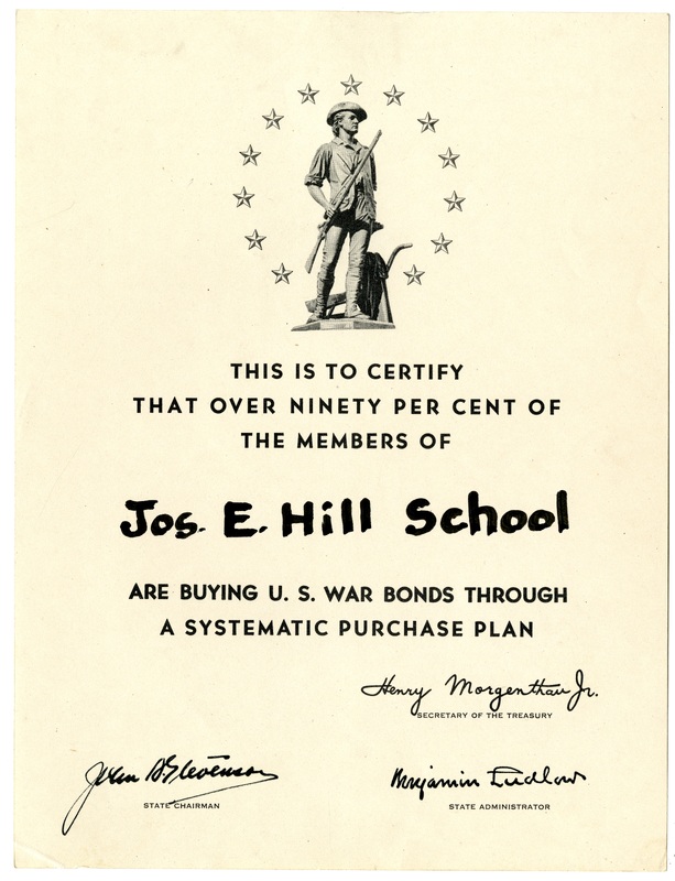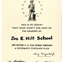 Folder 10 Certification of Joseph E. Hill School Purchasing U.S. War Bonds Joseph E. Hill Public School