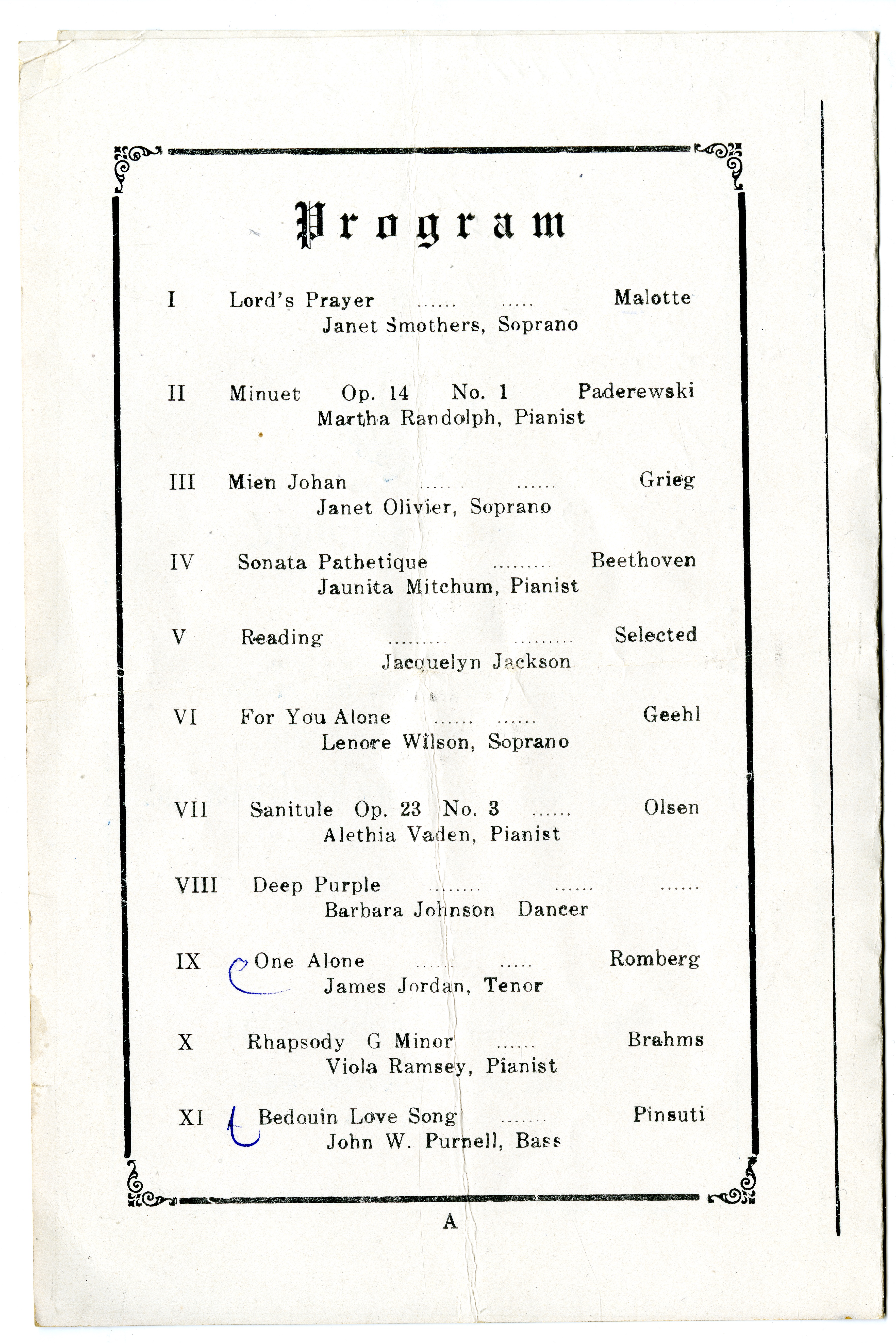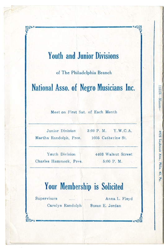 A musical program sponsored by the Youth and Junior Divisions of The Philadelphia Branch National Association of Negro Musicians Inc.