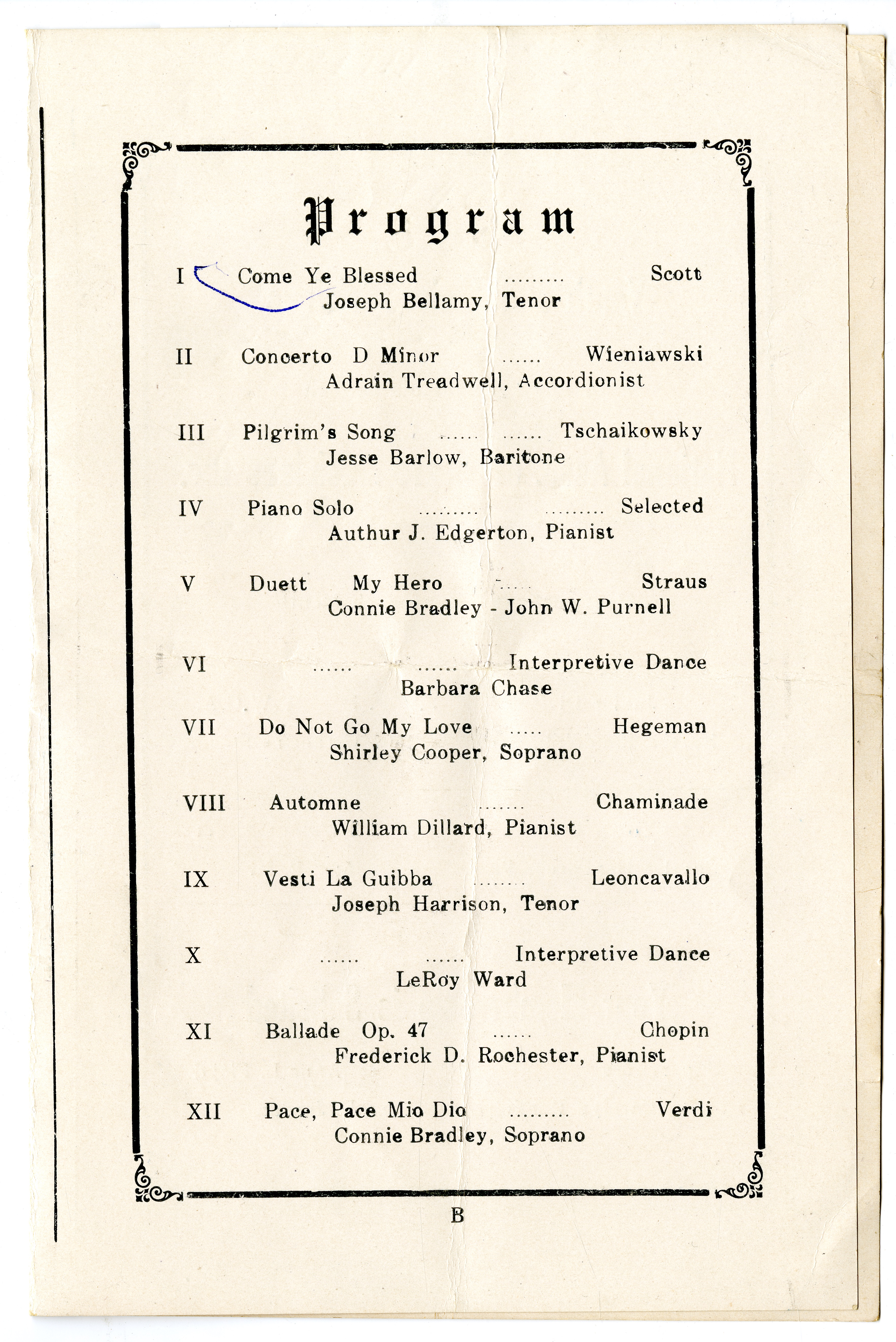 Second Annual Harvest Musical, November 7, 1950_verso.jpg