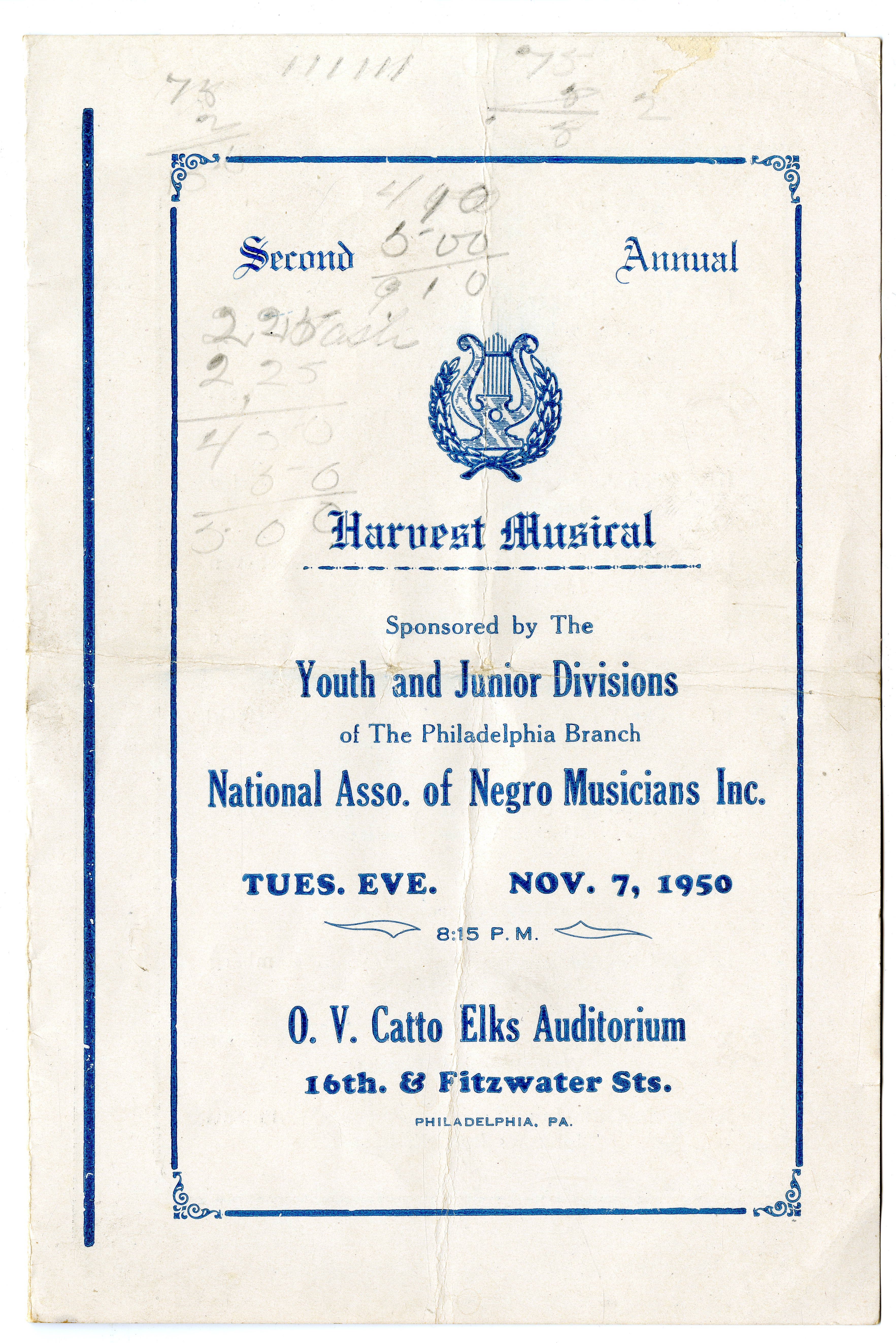 Dra Mu Opera Company Phila. Branch of National Association of... Folder 15 Second Annual Harvest Musical Sponsered by the Youth and Junior Divisions of the Philadelphia Branch National Association of Nefto Musicians, Inc.