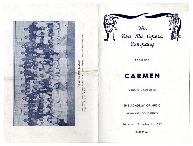 Program for a concert given by the Dra Mu Opera Company on November 3, 1947 at the Academy of Music.