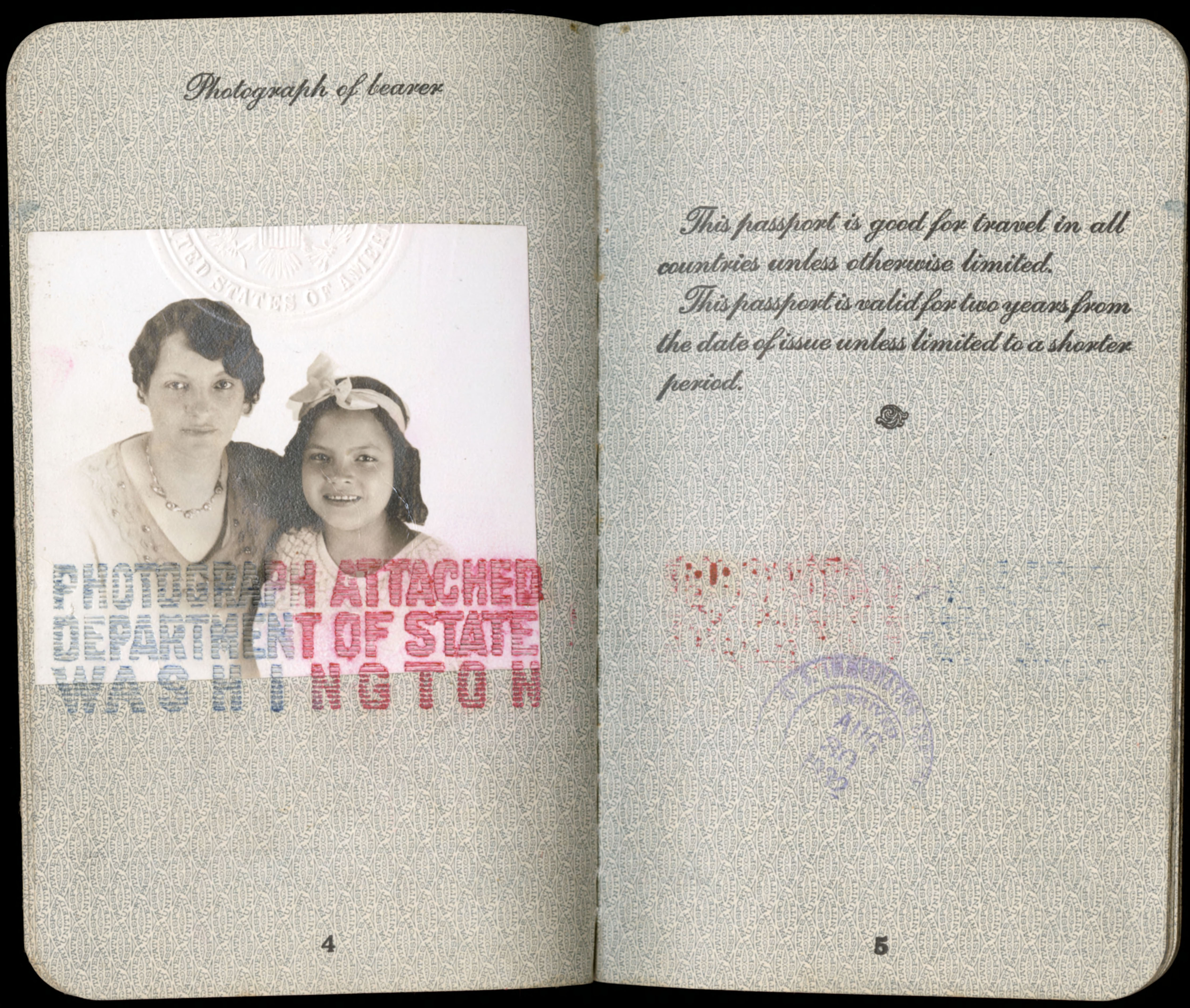 An insert from Agnes Upshur’s (1896-1984) day journal “My Trip Abroad.” The insert features her passport with a photograph of her and her young daughter Georgine Elizabeth Upshur.
