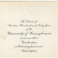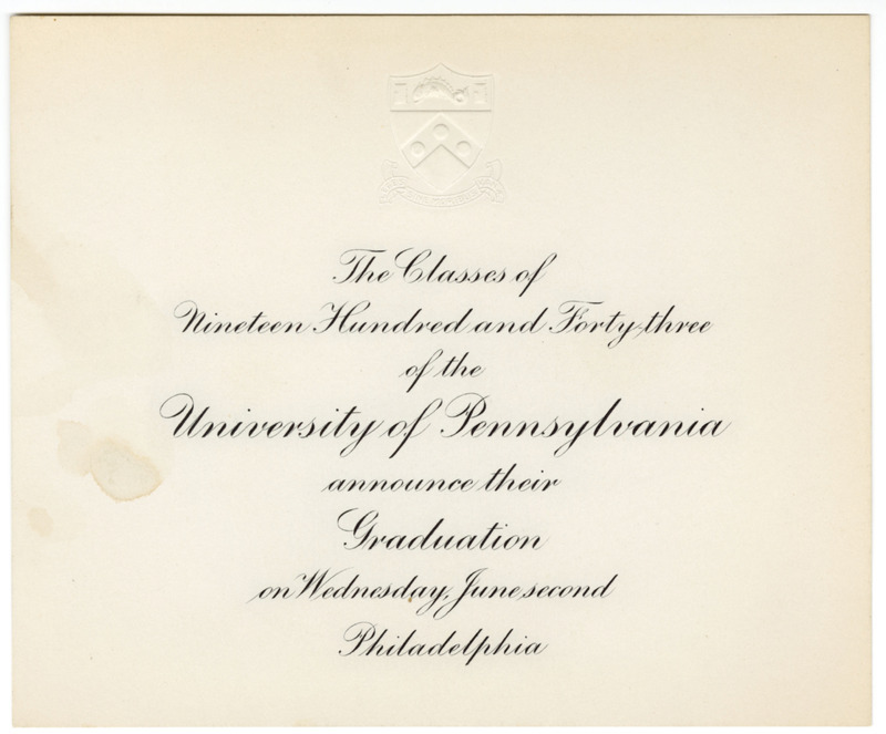 Invitation to the graduation of the University of Pennsylvania classes of 1943
